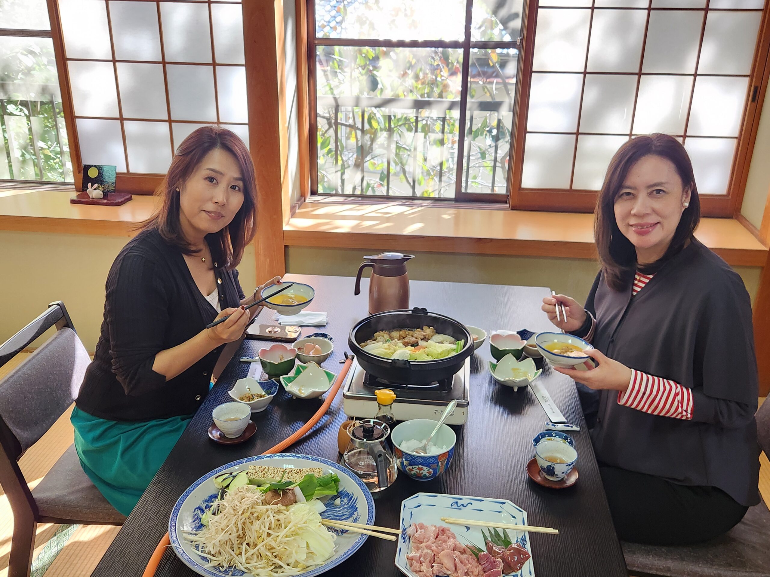 ランチでは同じ薬王寺温泉の「鬼王荘」で絶品鶏すきを堪能し、古賀市の豊かな食文化も満喫しました。